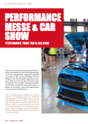 Over 30 prestigious exhibitors displayed their customer proximity in the breathtaking forge hall of Motorworld Village Metzingen and on the adjacent outdoor area, and were delighted to be able to conduct many good discus- sions. The fourth edition of the Performance Trade Fair & Car Show, organised by JMS Fahrzeugteile with over 220 cars on show, took place on the second weekend of Sep- tember. Visitors and exhibitors were equally enthusiastic about the location, where the vehicles could be presented to their best advantage.