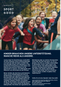 Behinderung oder aus sozialen Brennpunkten lernen über die Kraft des Sports, an sich zu glauben, ihre Ziele zu verfolgen, Rückschläge zu überwinden und ihr Leben selbst in die Hand zu nehmen. Ob Straßenfußball, Skate- boarding, Therapeutisches Reiten, Basketball oder Boxen: Die sozialen Sportprojekte motivieren die Kinder nicht nur, ein aktives Leben zu führen, sondern sie geben ihnen langfristig Halt.