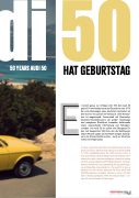 Er kommt genau zur richtigen Zeit: Mit dem Audi 50 geht 1974 unmittelbar nach der Ölpreiskrise von 1973 der erste Kleinwagen eines deutschen Herstellers an den Start. Er ist sparsam im Verbrauch, seine Konzep- tion ist wegweisend: Frontantrieb mit Quermotor, Zweitüren-Kombilimousine mit großer Heckklappe und umlegbarer Rücklehne, kompakte Außenmaße sowie ansprechende Fahrleistung und Fahreigen- schaften. Der Audi 50 ist zudem eine Blaupause für den fast baugleichen VW Polo, den die Wolfsburger sieben Monate später auf den Markt bringen: Synergi- en in der Konzernfamilie nutzen – auch vor 50 Jahren