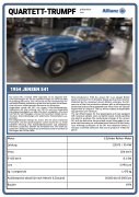 The car offered space for four passengers and was equipped with luxurious details such as leather seats, wood panelling and electric windows.The contemporary design of the Jensen 541 with its distinctive front end and curved lines made it a po- pular vehicle among car enthusiasts and lovers of British luxury cars. Although production of the 541 was relatively limited, it remains a coveted collector‘s item and a symbol of 1950s ele- gance.